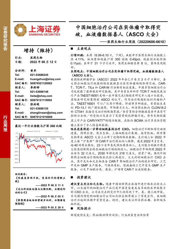 【上海证券】【20220612】医药生物行业周报:中国细胞治疗公司在实体瘤中取得突破,血液瘤数据喜人-29页