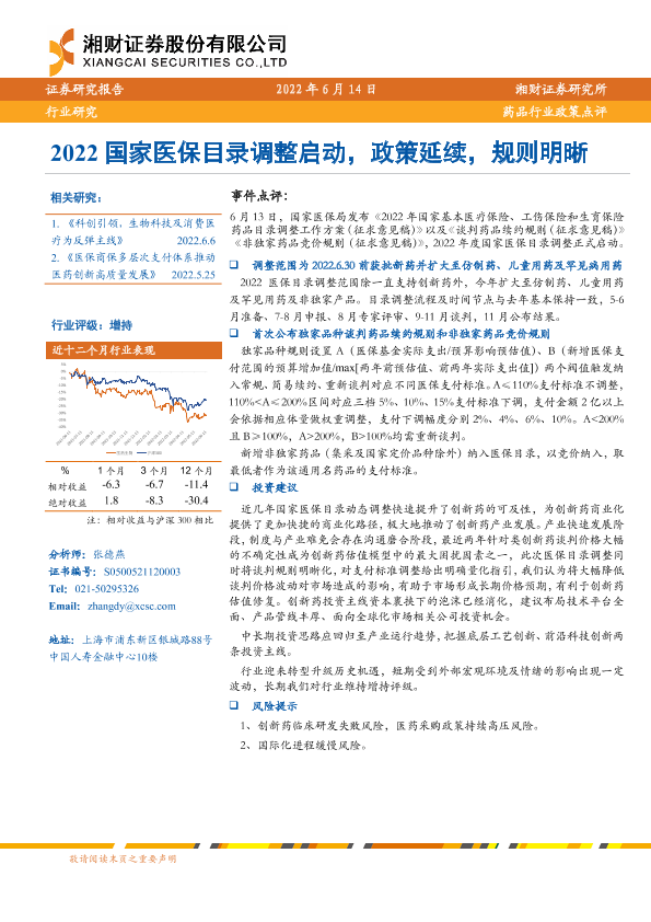 【湘财证券】【20220614】2022国家医保目录调整启动,政策延续,规则明晰-2页