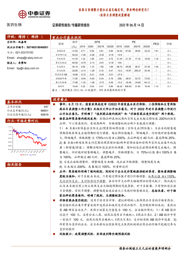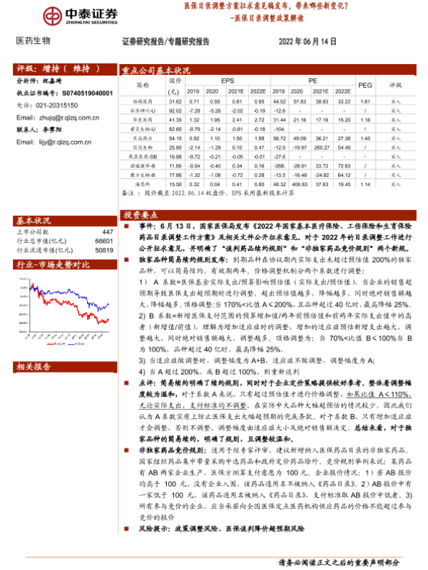 【中泰证券】【20220614】医保目录调整政策解读:医保目录调整方案征求意见稿发布,带来哪些新变化?-3页