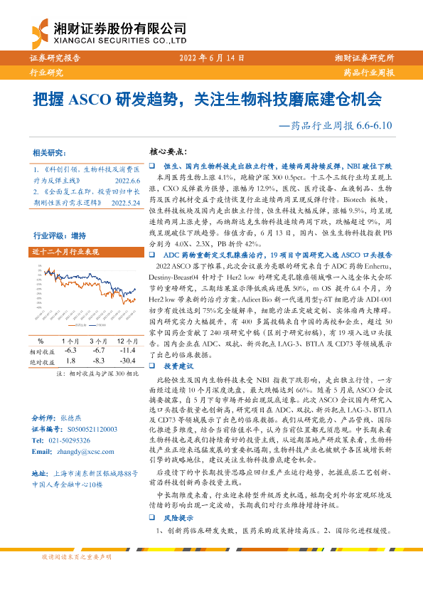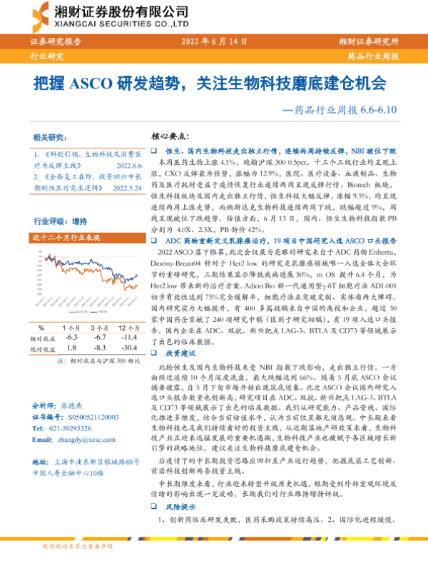 【湘财证券】【20220614】把握ASCO研发趋势,关注生物科技磨底建仓机会-16页