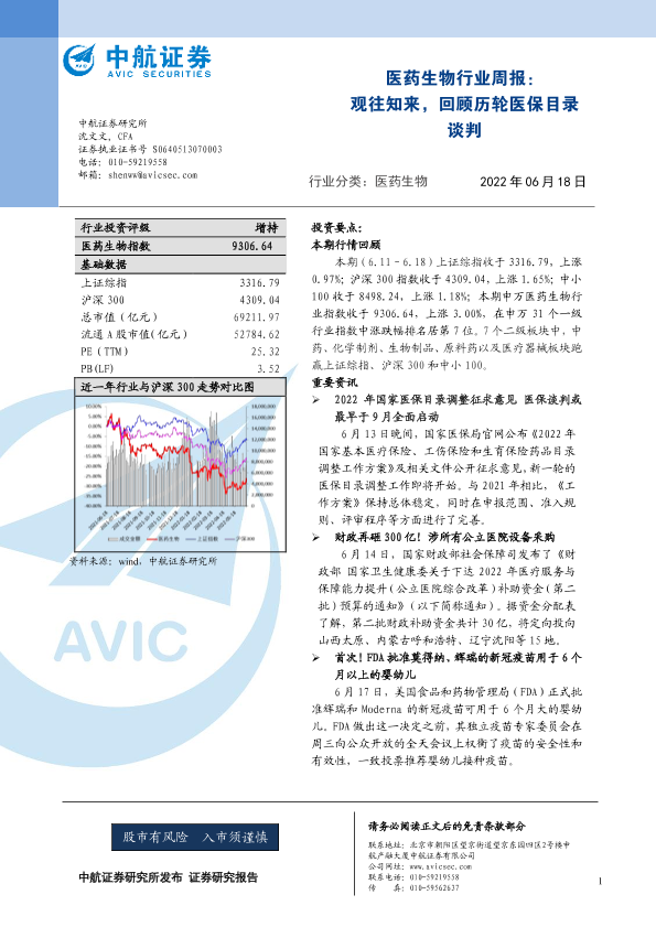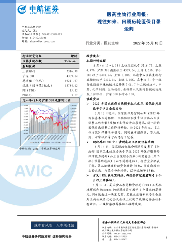 【中航证券】【20220618】医药生物行业周报:观往知来,回顾历轮医保目录谈判-11页
