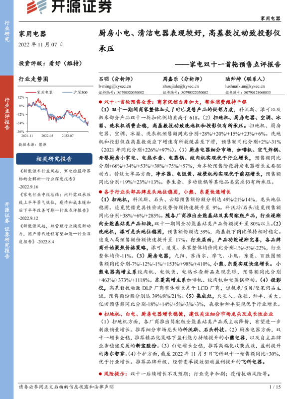 【开源证券】【20221107】家电行业双十一首轮预售点评报告:厨房小电、清洁电器表现较好,高基数扰动致投影仪承压-15页