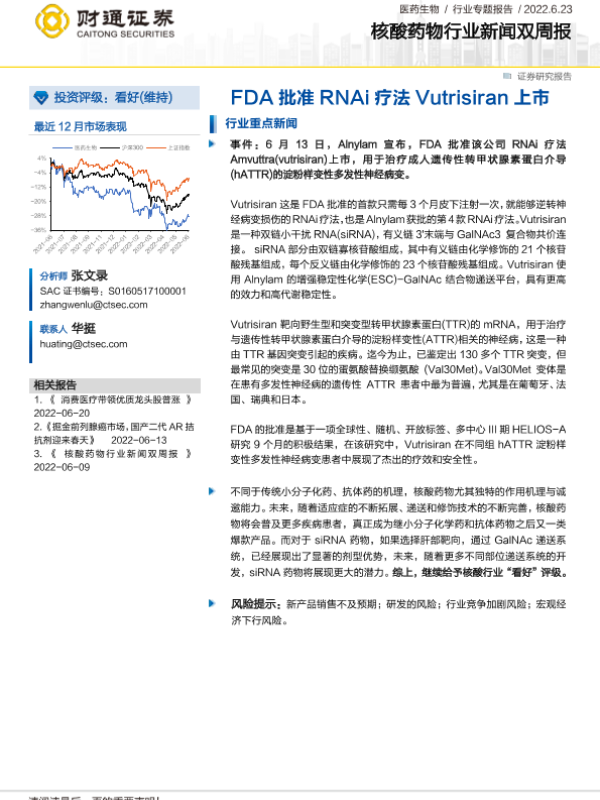 【财通证券】【20220623】FDA批准RNAi疗法Vutrisiran上市-12页