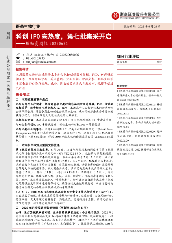 【浙商证券】【20220626】医药生物行业:投融资周报-12页
