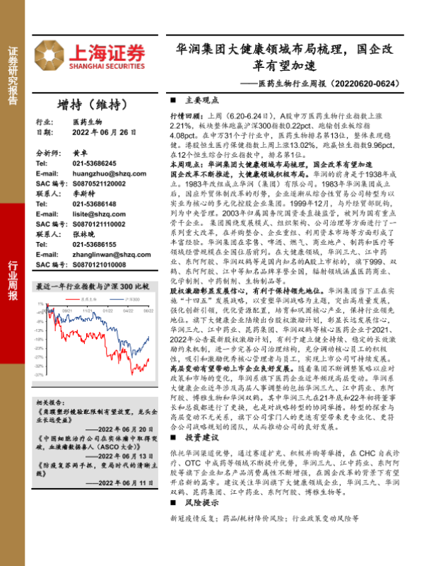 【上海证券】【20220626】医药生物行业周报:华润集团大健康领域布局梳理,国企改革有望加速-28页