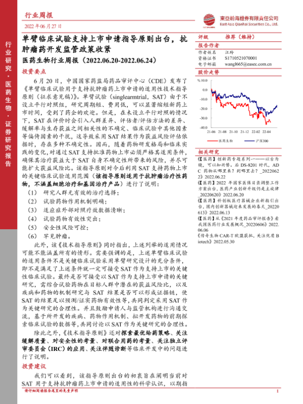【东亚前海证券】【20220627】单臂临床试验支持上市申请指导原则出台,抗肿瘤药开发监管政策收紧-13页