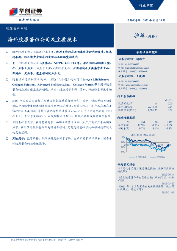 【华创证券】【20220629】胶原蛋白专题:海外胶原蛋白公司及主要技术-27页