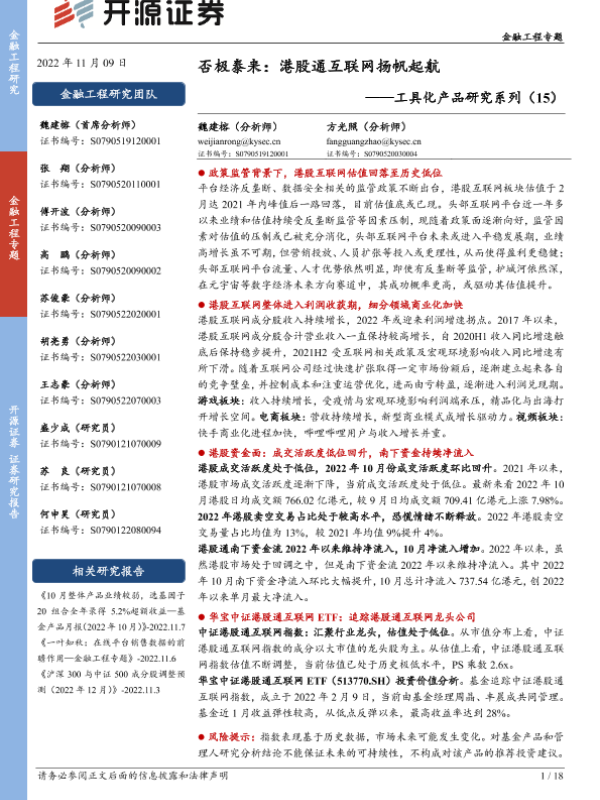 【开源证券】【20221109】工具化产品研究系列(15):否极泰来,港股通互联网扬帆起航-18页