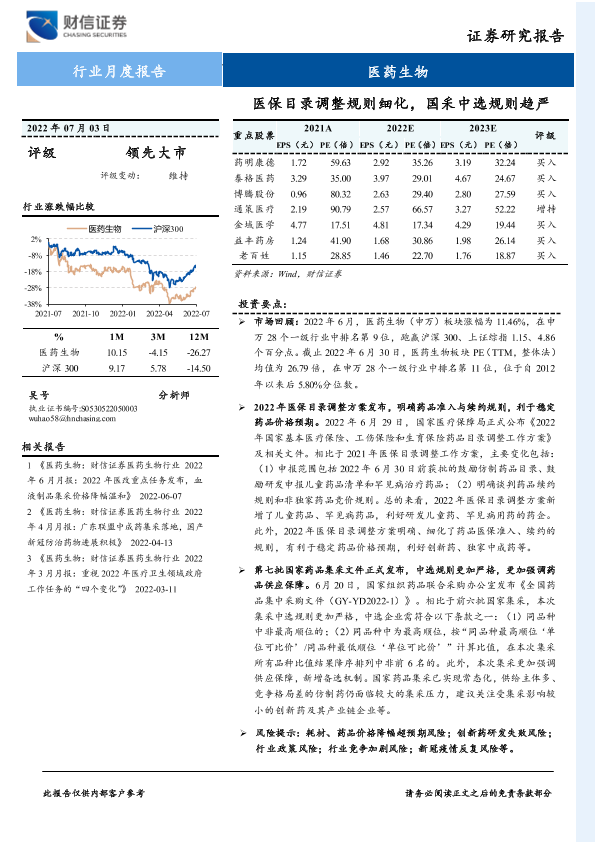 【财信证券】【20220703】医药生物行业月度报告:医保目录调整规则细化,国采中选规则趋严-11页