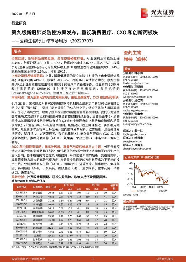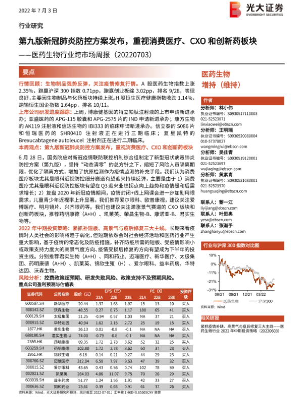 【光大证券】【20220703】第九版新冠肺炎防控方案发布,重视消费医疗、CXO和创新药板块-28页