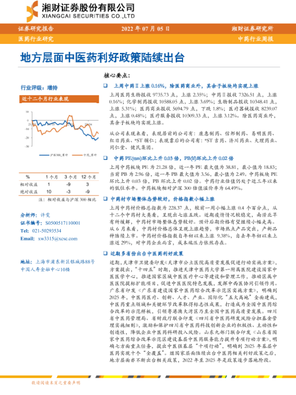 【湘财证券】【20220705】中药行业周报:地方层面中医药利好政策陆续出台-12页