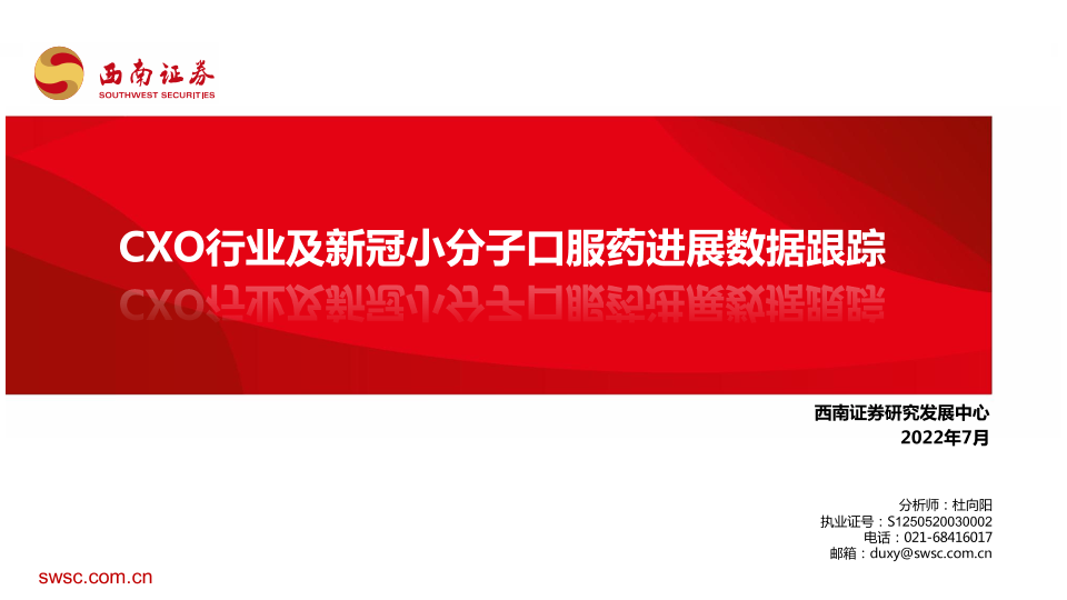 【西南证券】【202207】CXO行业及新冠小分子口服药进展数据跟踪-21页