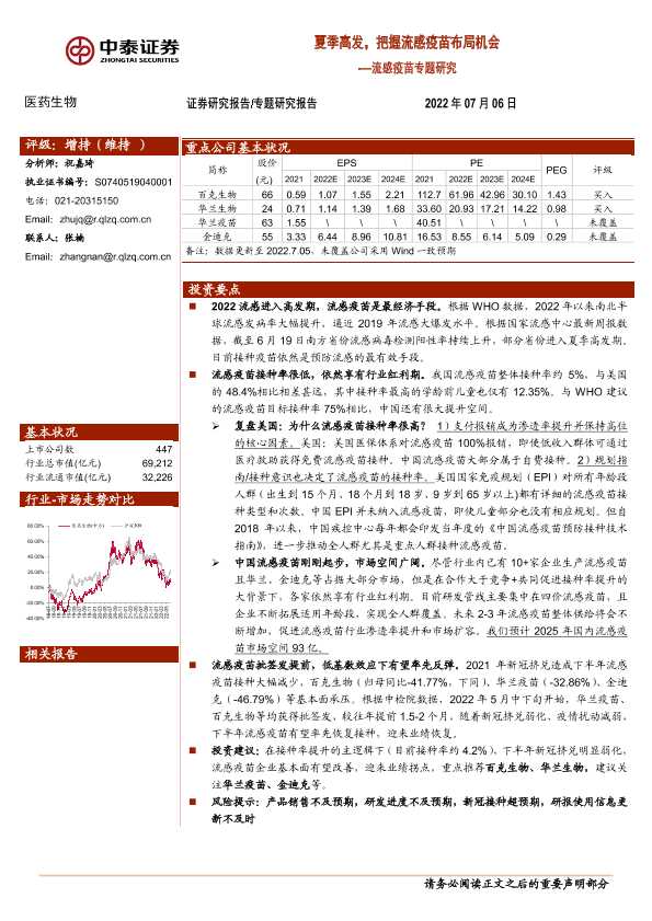 【中泰证券】【20220706】流感疫苗专题研究:夏季高发,把握流感疫苗布局机会-13页