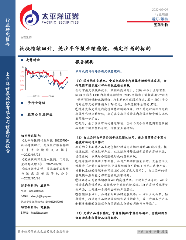 【太平洋证券】【20220709】医药生物行业周报:板块持续回升,关注半年报业绩稳健、确定性高的标的-17页