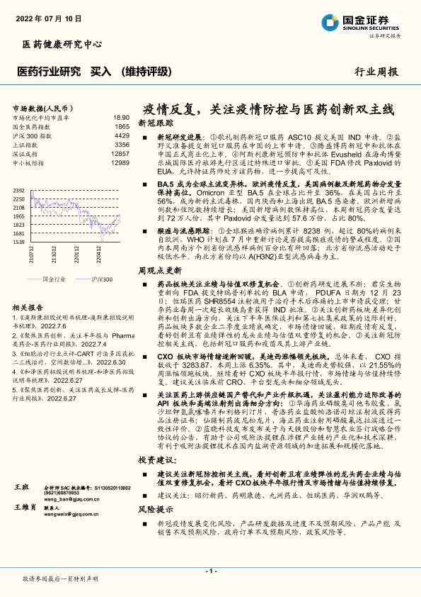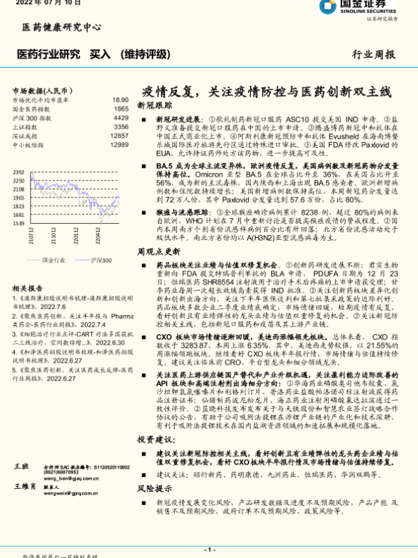 【国金证券】【20220710】医药行业周报:疫情反复,关注疫情防控与医药创新双主线-25页