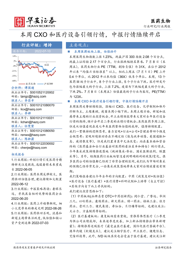【华安证券】【20220710】本周CXO和医疗设备引领行情,中报行情陆续开启-16页