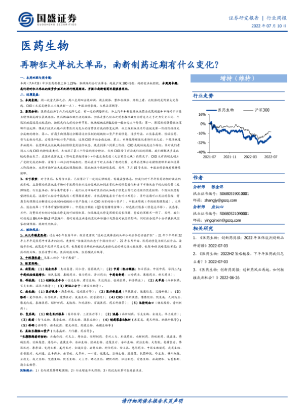 【国盛证券】【20220710】医药生物行业周报:再聊狂犬单抗大单品,南新制药近期有什么变化?-29页