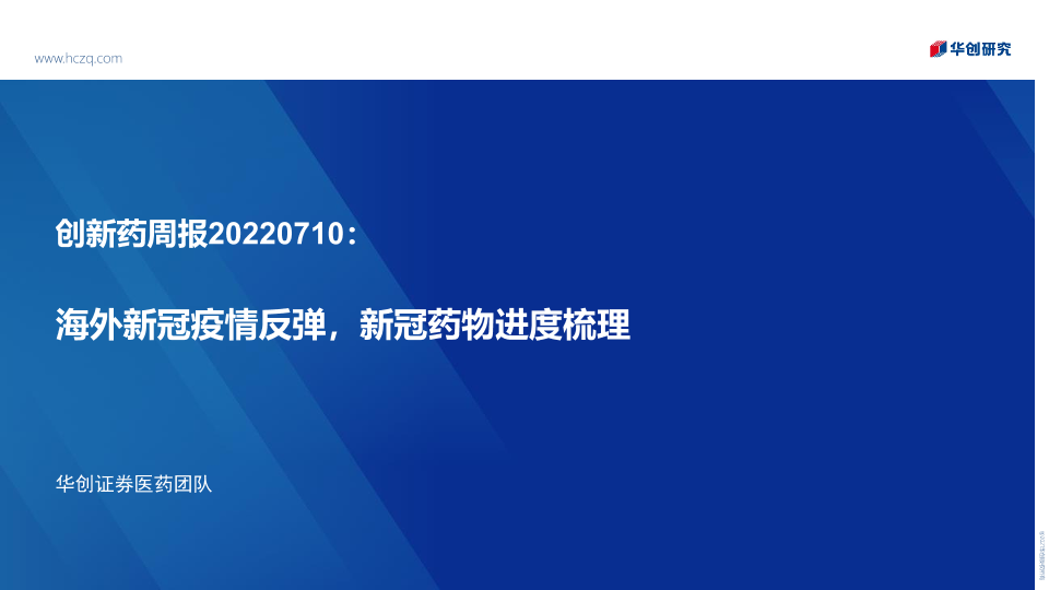 【华创证券】【20220710】创新药周报:海外新冠疫情反弹,新冠药物进度梳理-32页