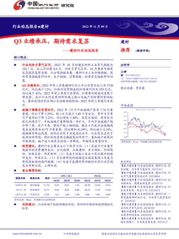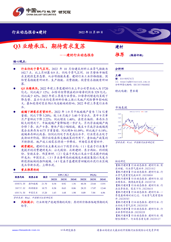 【银河证券】【20221109】建材行业动态报告:Q3业绩承压,期待需求复苏-15页
