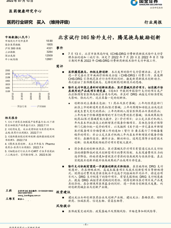 【国金证券】【20220713】北京试行DRG除外支付,腾笼换鸟鼓励创新-3页
