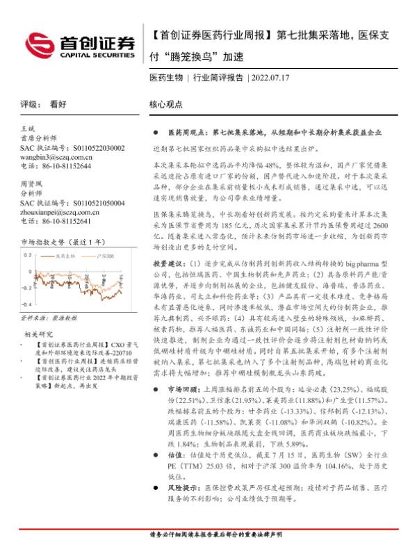 【首创证券】【20220717】第七批集采落地,医保支付“腾笼换鸟”加速-17页