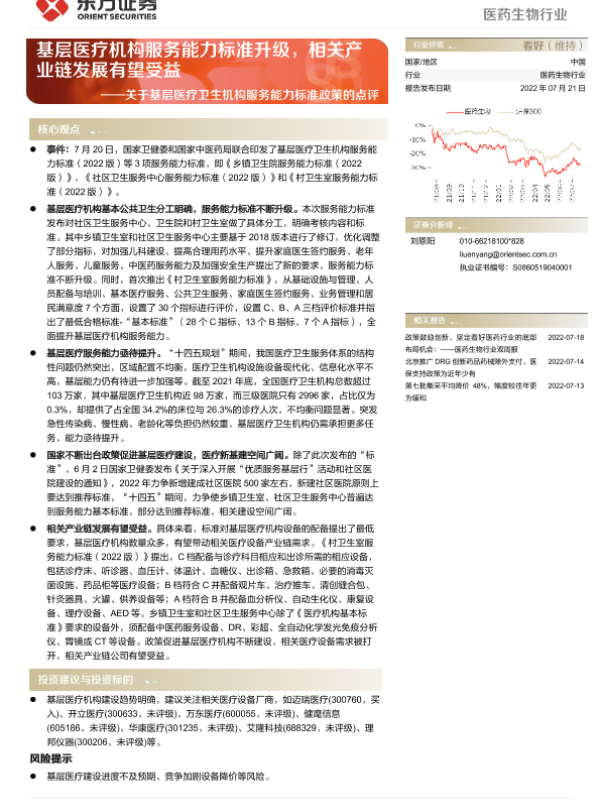 【东方证券】【20220721】医药生物行业关于基层医疗卫生机构服务能力标准政策的点评-3页