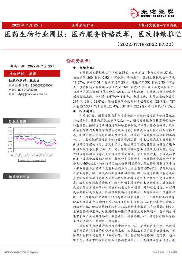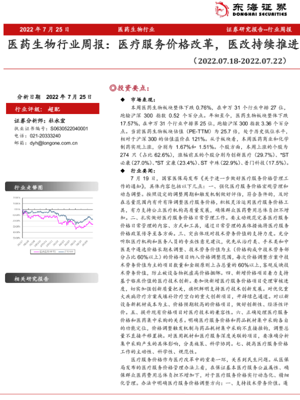 【东海证券】【20220725】医药生物行业周报:医疗服务价格改革,医改持续推进-11页