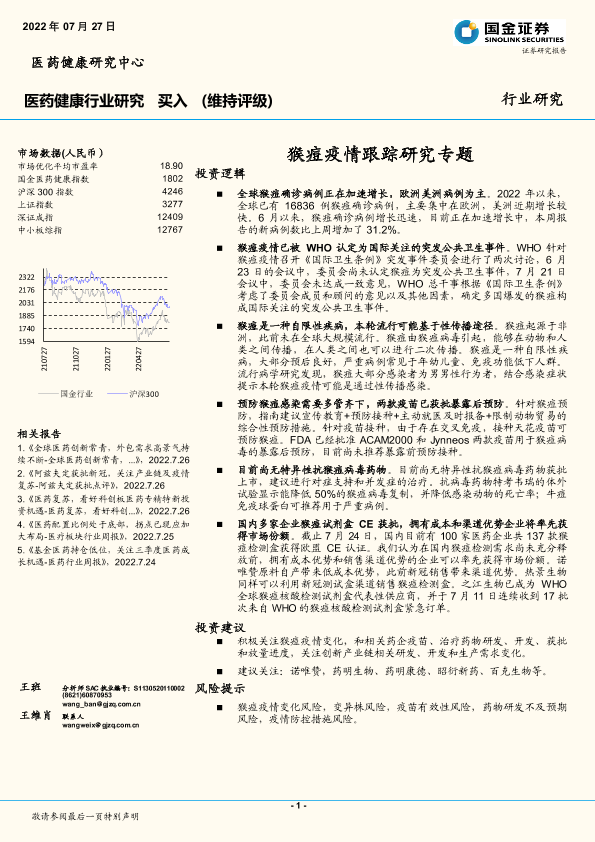 【国金证券】【20220727】医药健康行业研究:猴痘疫情跟踪研究专题-14页