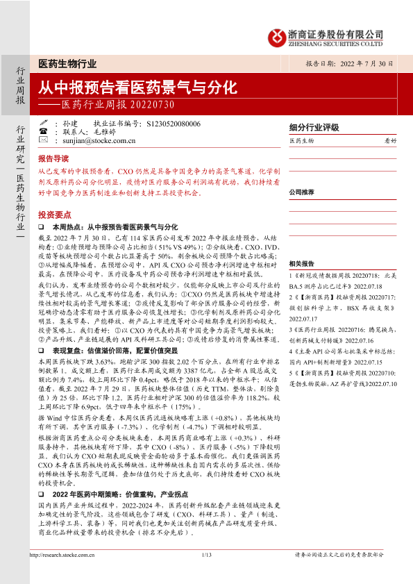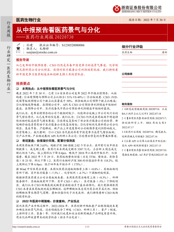 【浙商证券】【20220730】从中报预告看医药景气与分化-13页