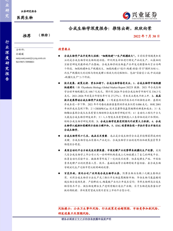 【兴业证券】【20220730】医药生物:合成生物学深度报告:推陈出新,欣欣向荣-67页
