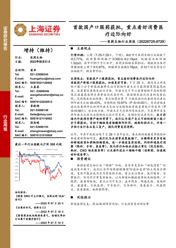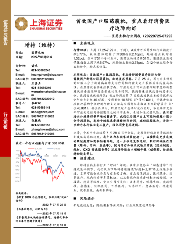 【上海证券】【20220801】首款国产口服药获批,重点看好消费医疗边际向好-25页