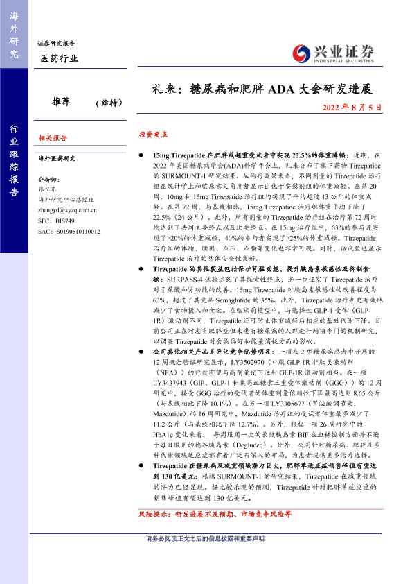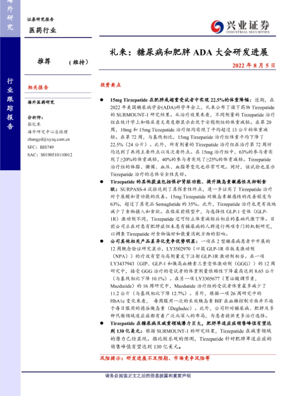 【兴业证券】【20220805】礼来:糖尿病和肥胖 ADA大会研发进展-11页