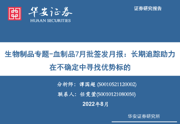 【华安证券】【202208】生物制品专题-血制品7月批签发月报:长期追踪助力在不确定中寻找优势标的-23页