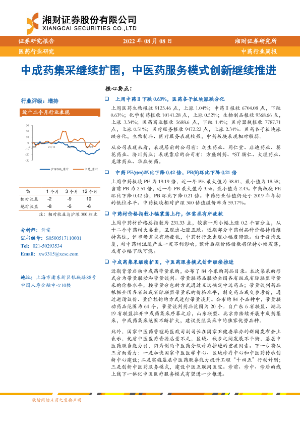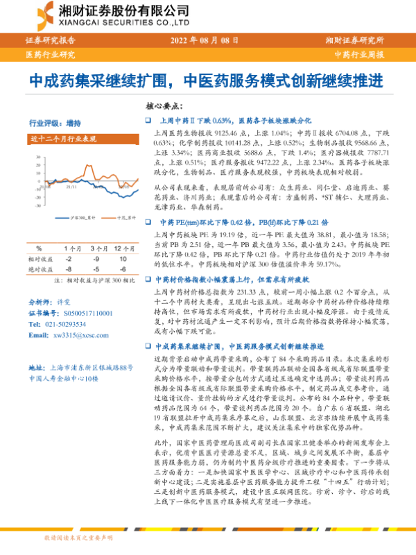 【湘财证券】【20220808】中药行业周报:中成药集采继续扩围,中医药服务模式创新继续推进-12页