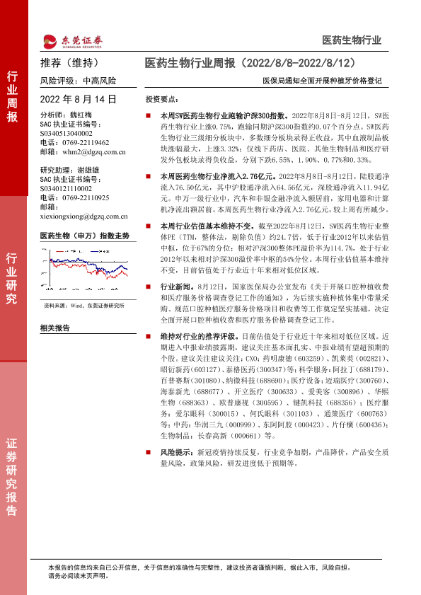 【东莞证券】【20220814】医药生物行业周报:医保局通知全面开展种植牙价格登记-10页