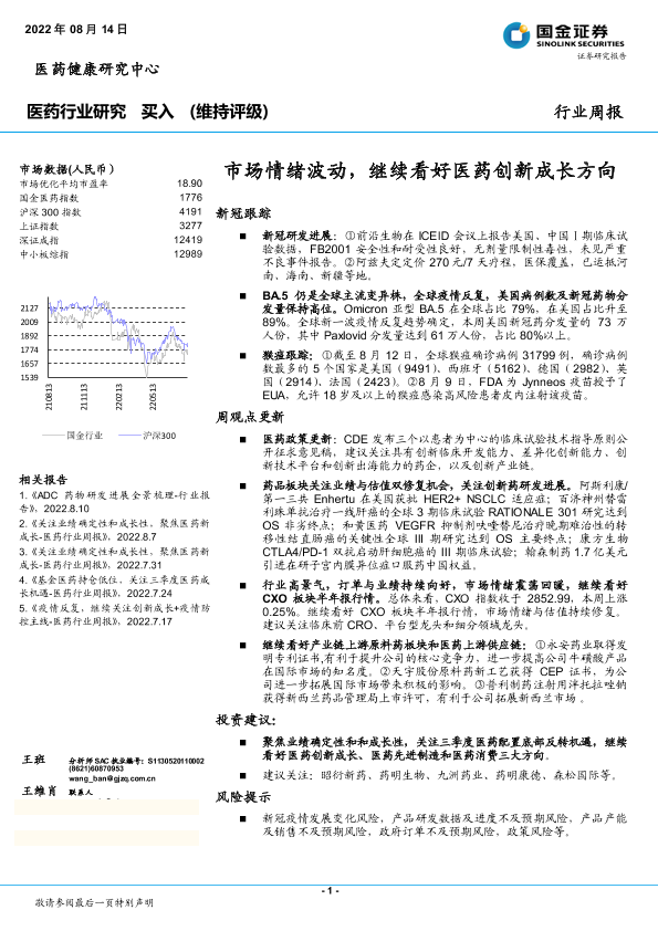 【国金证券】【20220814】医药行业研究周报:市场情绪波动,继续看好医药创新成长方向-19页
