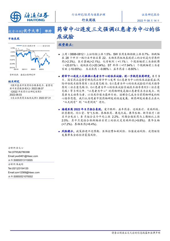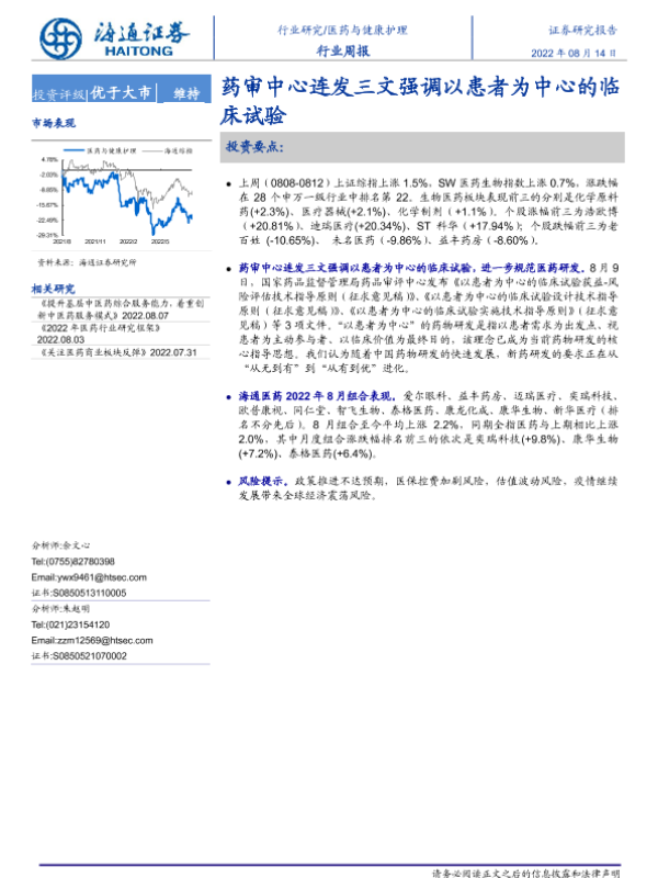 【海通证券】【20220814】医药与健康护理行业周报:药审中心连发三文强调以患者为中心的临床试验-6页