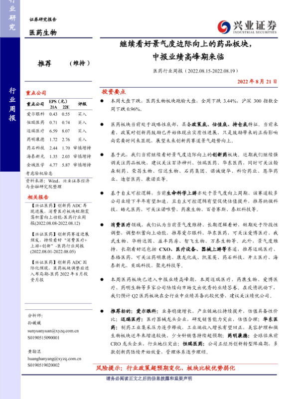 【兴业证券】【20220821】继续看好景气度边际向上的药品板块,中报业绩高峰期来临-12页
