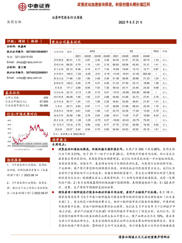 【中泰证券】【20220821】医药生物行业周报:政策扰动加速板块探底,积极把握长期价值区间-12页