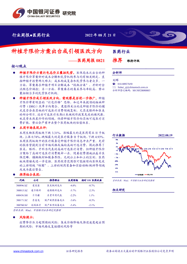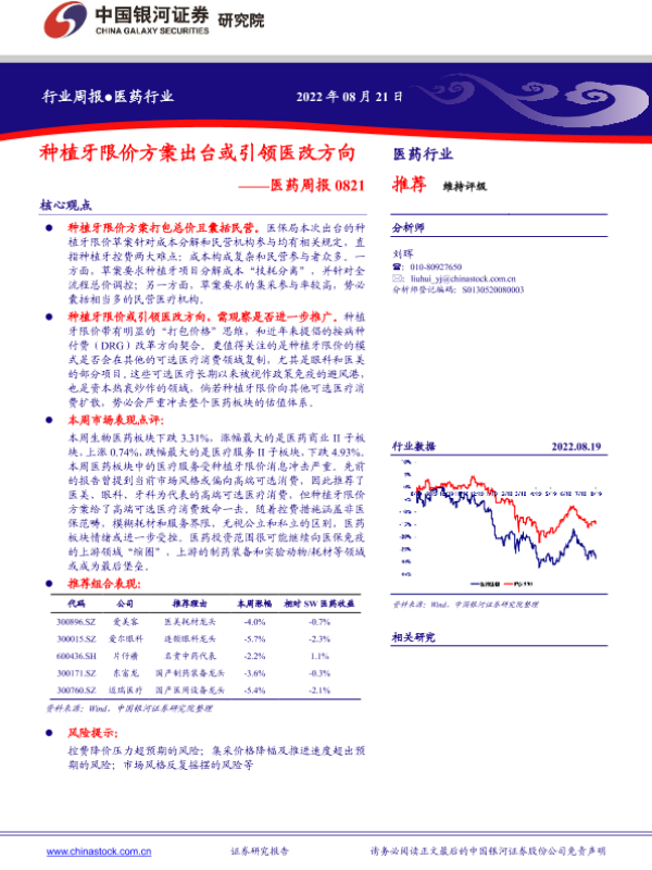 【银河证券】【20220821】医药周报:种植牙限价方案出台或引领医改方向-11页
