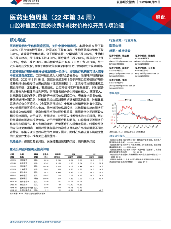 【国信证券】【20220822】医药生物周报(22年第34周)口腔种植医疗服务收费和耗材价格拟开展专项治理-12页