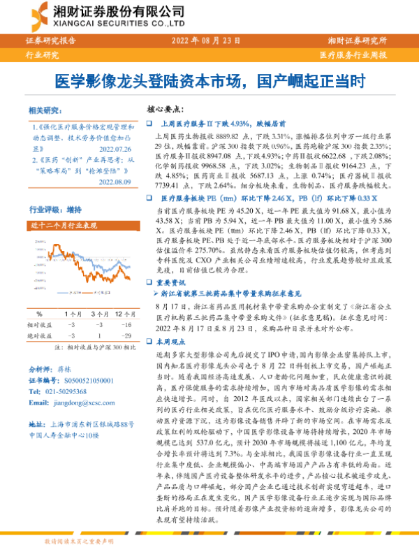【湘财证券】【20220823】医疗服务行业周报:医学影像龙头登陆资本市场,国产崛起正当时-12页