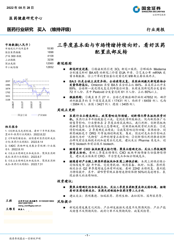 【国金证券】【20220828】医药行业研究周报:三季度基本面与市场情绪持续向好,看好医药配置底部反转-23页