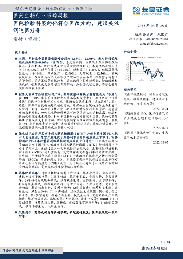 【东吴证券】【20220828】医药生物行业跟踪周报:医院检验科集约化符合医改方向-28页