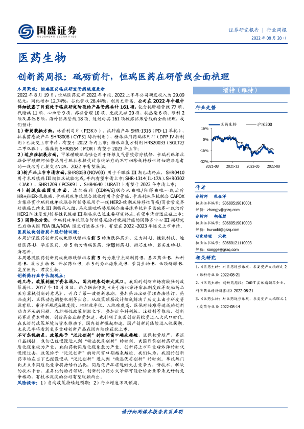 【国盛证券】【20220828】创新药周报:砥砺前行,恒瑞医药在研管线全面梳理-27页