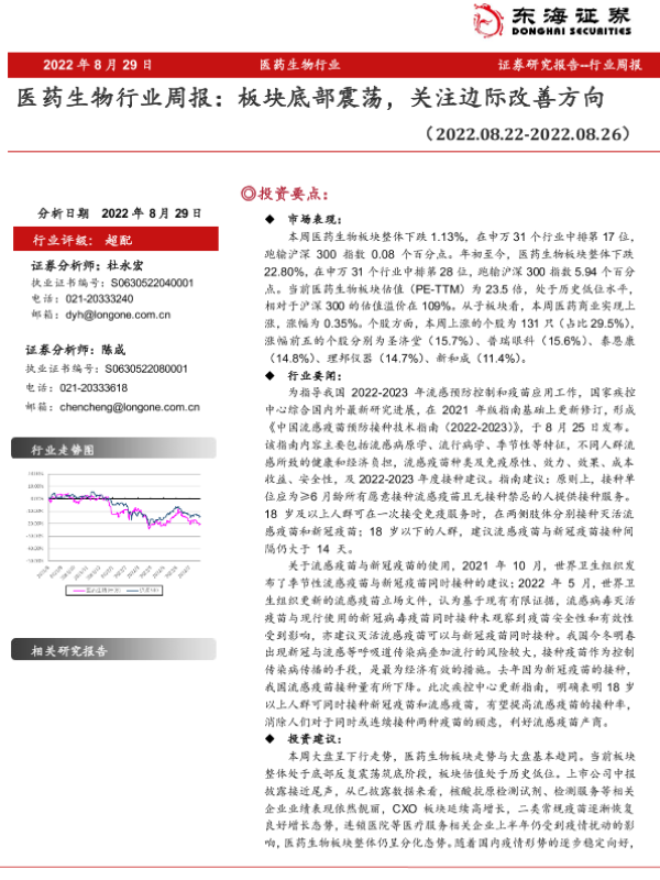 【东海证券】【20220829】医药生物行业周报:板块底部震荡,关注边际改善方向-9页
