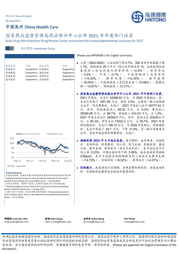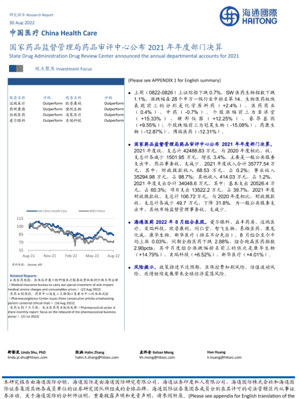 【海通国际】【20220830】国家药品监督管理局药品审评中心公布2021年年度部门决算-12页