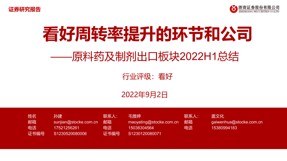 【浙商证券】【20220902】原料药及制剂出口板块2022H1总结:看好周转率提升的环节和公司-15页