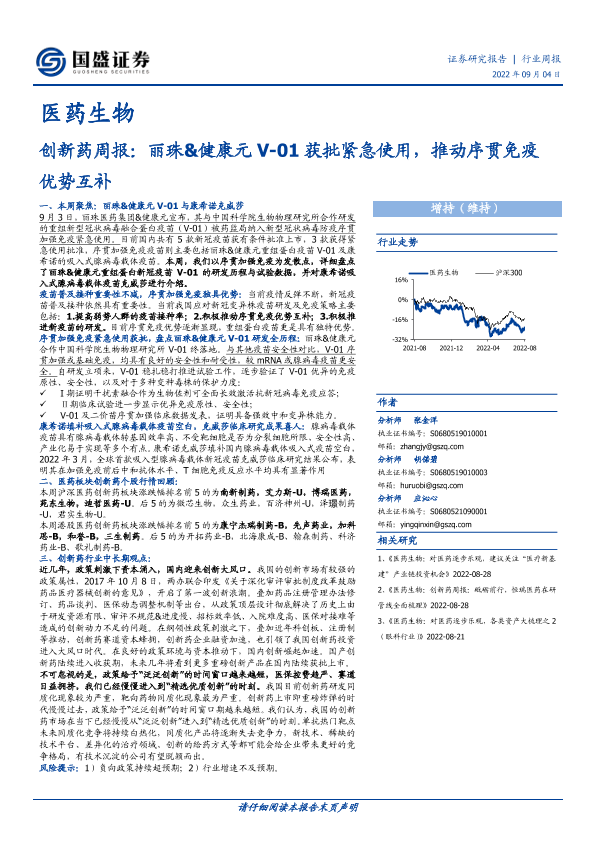 【国盛证券】【20220904】创新药周报:丽珠&健康元V-01获批紧急使用,推动序贯免疫优势互补-23页