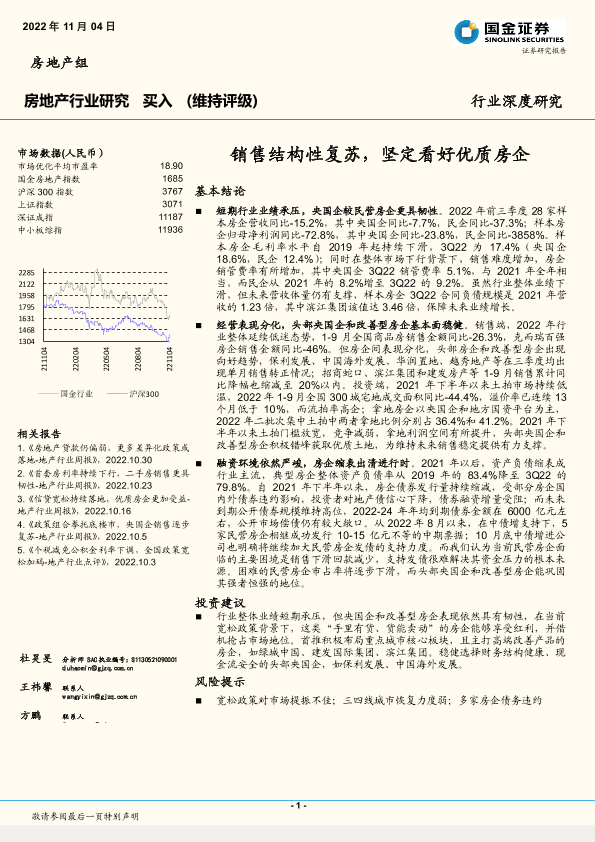 【国金证券】【20221104】房地产行业:销售结构性复苏,坚定看好优质房企-16页